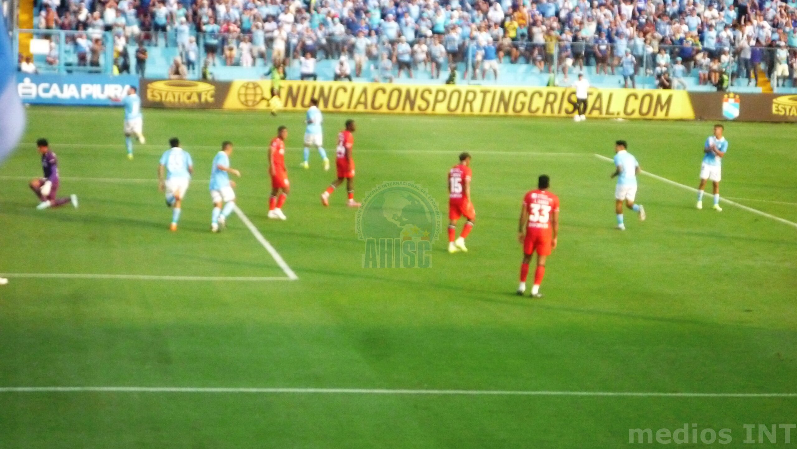 Luego del espectáculo musical y la presentación del equipo, arranca el partido, Sporting Cristal sale a presionar desde el inicio, así a los 18′ luego de gran jugada de Yoshimar Yotún, Irven Avila en gran definición abre el marcador. Sorpresivamente la visita anota el transitorio empate a los 22′ por intermedio de José Fajardo terminando un contragolpe. Cristal se mantiene al ataque y a los 28′ se pone nuevamente adelante a través de Gabriel Santana quien recibió un pase preciso de Martín Távara. No se altera el marcador hasta el termino del primer tiempo.