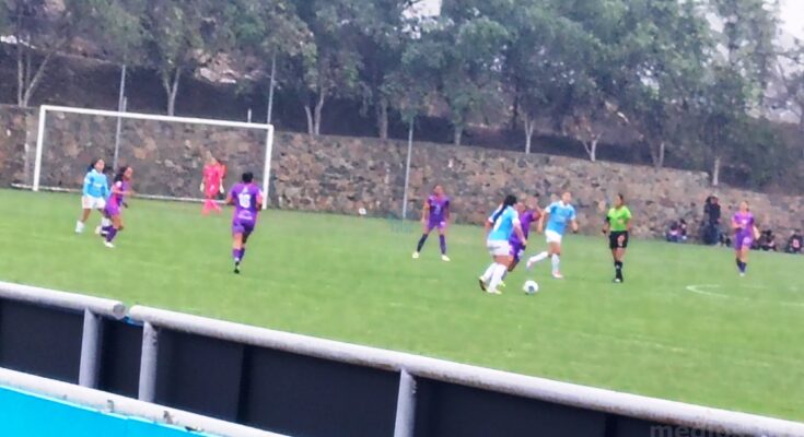 Rápidamente a los 5′ Se abre la cuenta por intermedio de Karol Murcia. Pasaron pocos minutos para que a los 11′ nuevamente Karol Murcia, esta vez de penal, aumente el marcador. A los 29′ una salida a destiempo de la portera Ericka Correa hace que cometa falta aunque fuera del área que fue castigada con tarjeta roja, lo que adicionalmente provocó el debut de la juvenil Fiorela Sucuitana en la portería celeste. A partir de este momento se bajaron las revoluciones al quedar con una jugadora menos. La primera parte se cierra con la diferencia de 2 goles.