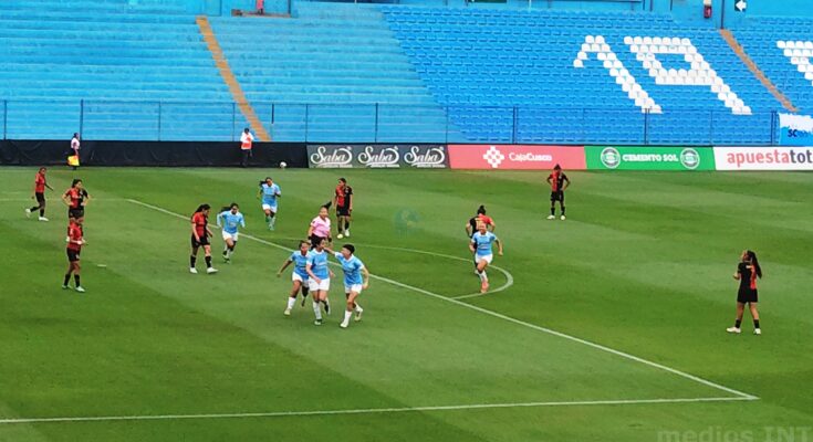 Cristal sale a dominar el partido y como consecuencia de esto la cuenta se abre rápidamente a los 2′ a través de Danna Lambraño con su primer gol con camiseta celeste. Pese a mantenerse con el control de las acciones, es el rival el que anota la igualdad a los 17′ por intermedio de Mercy Carrilo. La cuenta se mantiene hasta el final del primer tiempo.